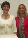 Die beiden Preisträgerinnen der Künstlergilde 2014: Andrea Gorsewski (links) und Regina Wieser. Davor mit feinem Kupferdraht die preisgekrönte Plastik "Bloße Assoziation" von Andrea Gorsewski.